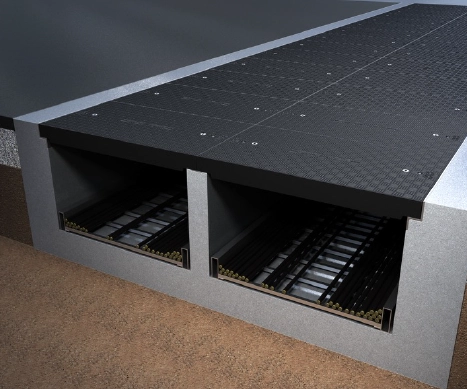 Fibrelite trench covers are used on single trench, dual trench and triple trench runs within data centres. We can cover single trench runs up to 1,675 mm / 66” wide and multiple trench runs in most configurations with middle wall supports as shown.