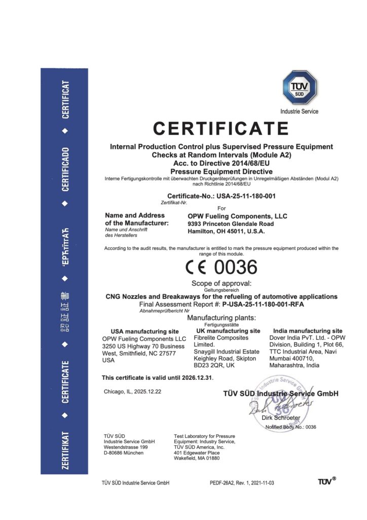 TUV: CNG Nozzles & Breakaways for the Refuelling of Automotive Applications